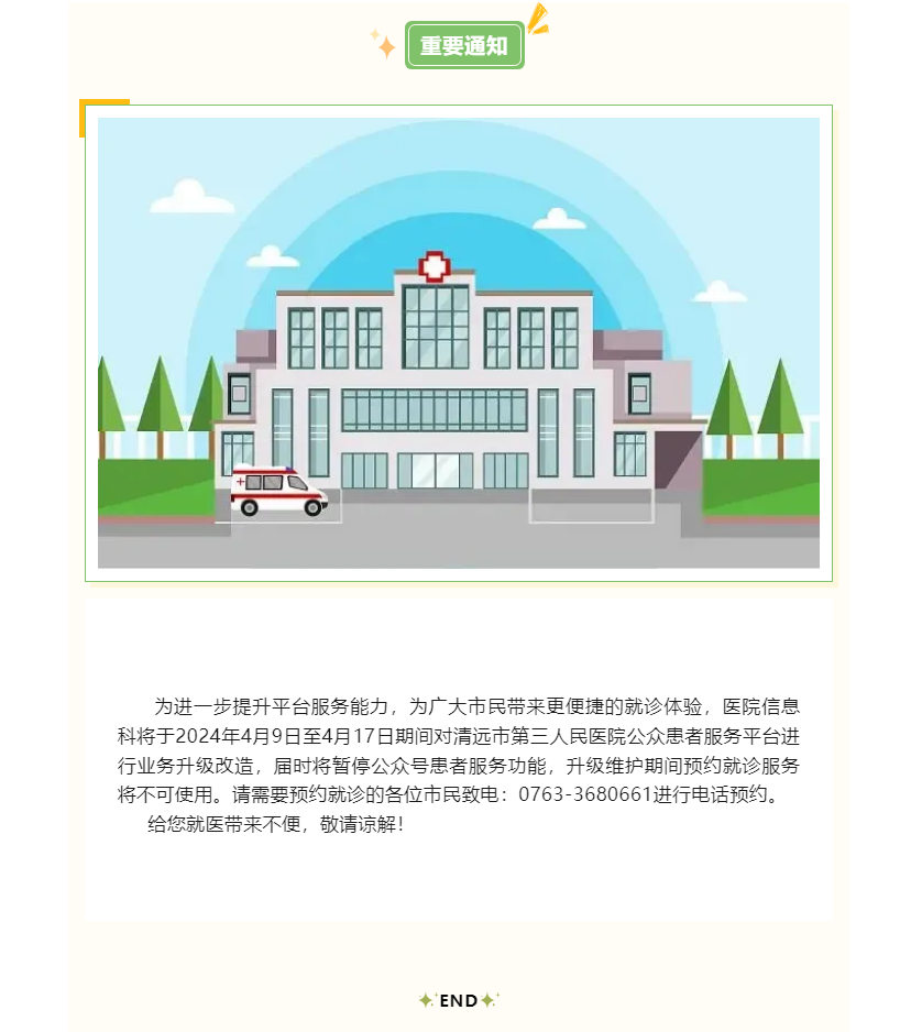關于更換清遠市第三人民醫(yī)院微信公眾號上患者服務平臺的通知