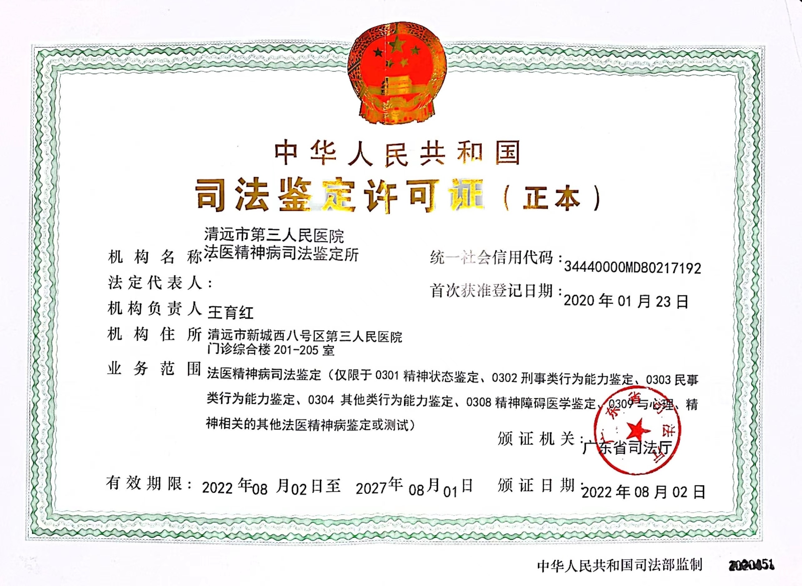 清遠市第三人民醫(yī)院法醫(yī)精神病司法鑒定所是廣東省司法廳頒發(fā)司法鑒定許可證的精神病司法鑒定機構(gòu),也是目前清遠市唯一的法醫(yī)精神病司法鑒定機構(gòu),主要受理公、檢、法委托的法醫(yī)精神病司法鑒定。