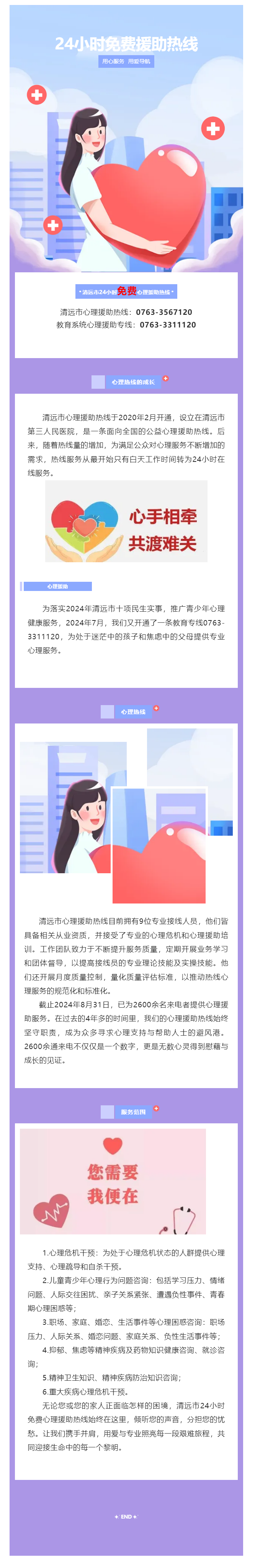 【公益服務(wù)】清遠市24小時免費心理援助熱線簡介