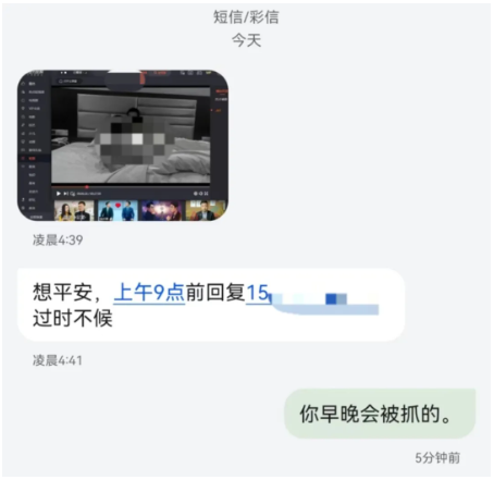 某天凌晨,市民李先生在睡眼蒙眬中突然收到一條陌生號碼發(fā)來的彩信,點開一看,竟是“自己”與一名陌生女性的裸體床照。緊接著,對方又發(fā)來一條短信,稱想平安,上午9點前回復電話15*********,過時不候。