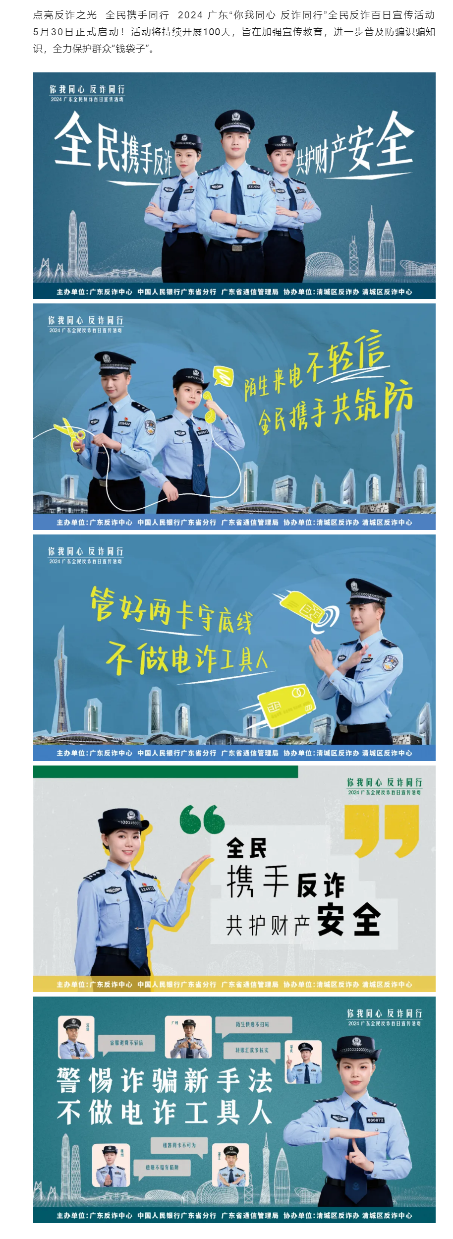 【全民反詐】點亮反詐之光 全民攜手同行 2024 廣東“你我同心 反詐同行”全民反詐百日宣傳活動5月30日正式啟動!