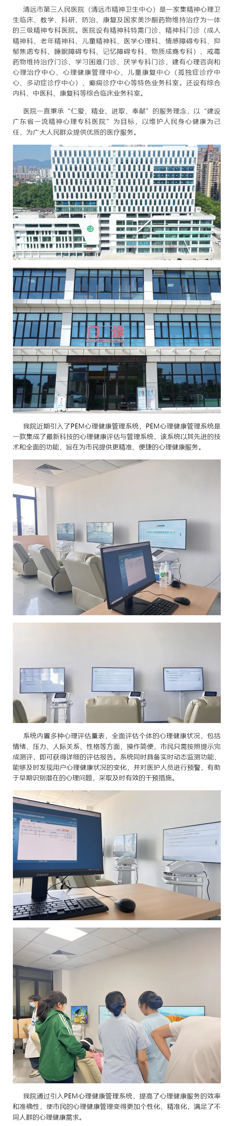 【服務(wù)提升】清遠(yuǎn)市第三人民醫(yī)院引入PEM心理健康管理系統(tǒng),提升患者就醫(yī)體驗(yàn)