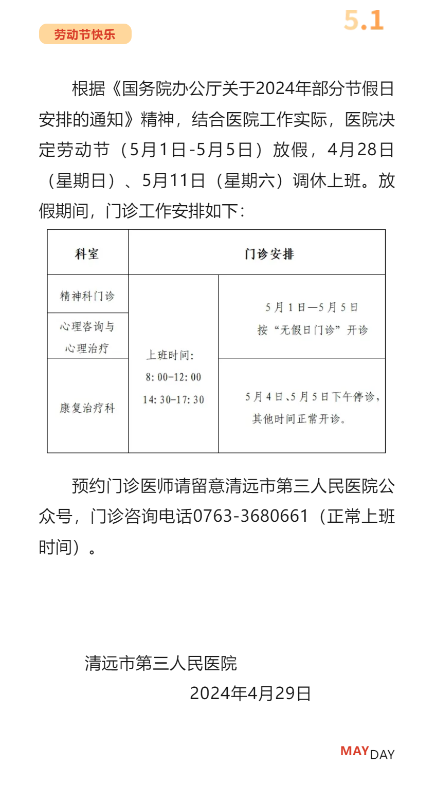 關(guān)于2024年勞動(dòng)節(jié)假期門診工作安排的通知