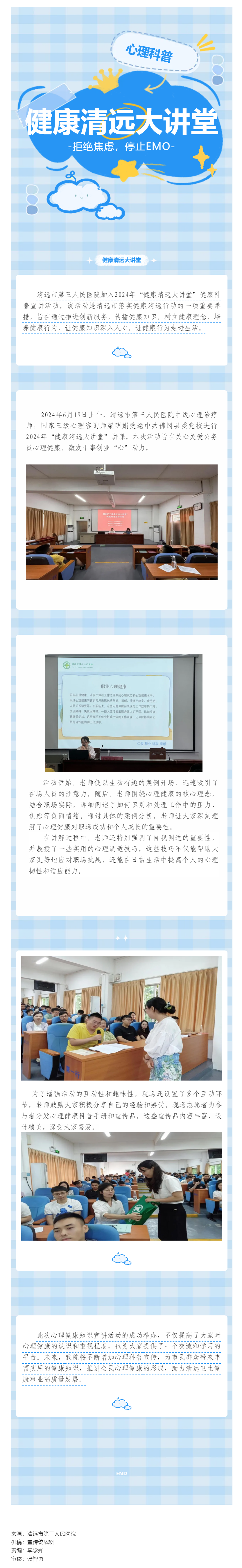 【健康清遠(yuǎn)大講堂】熱烈一夏,激發(fā)“心”動力