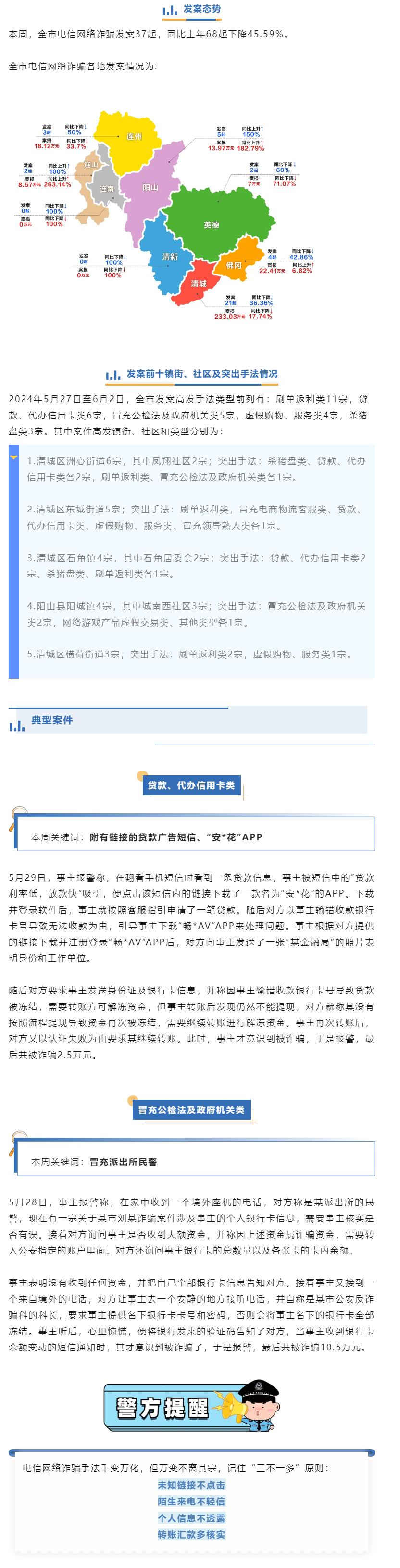 清遠(yuǎn)市一周電詐發(fā)案主要情況通報(bào)(2024年5月27日-6月2日)