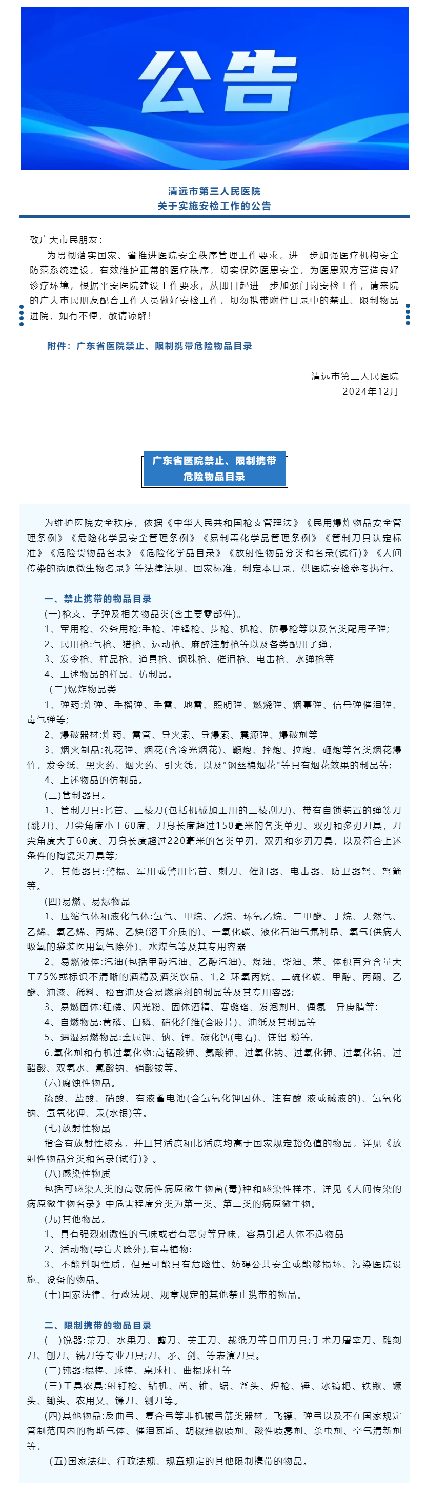 重要公告!清遠(yuǎn)市第三人民醫(yī)院關(guān)于實(shí)施安檢工作的公告