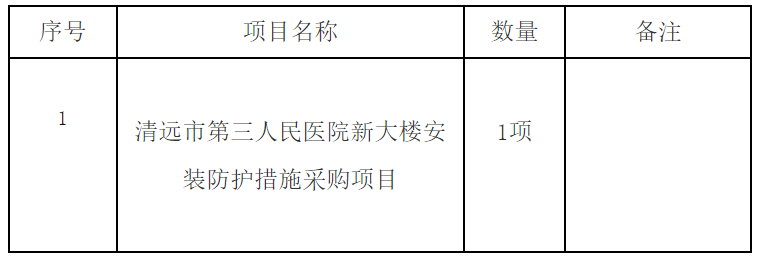 清遠(yuǎn)市第三人民醫(yī)院新大樓安裝防護(hù)措施采購項(xiàng)目。
