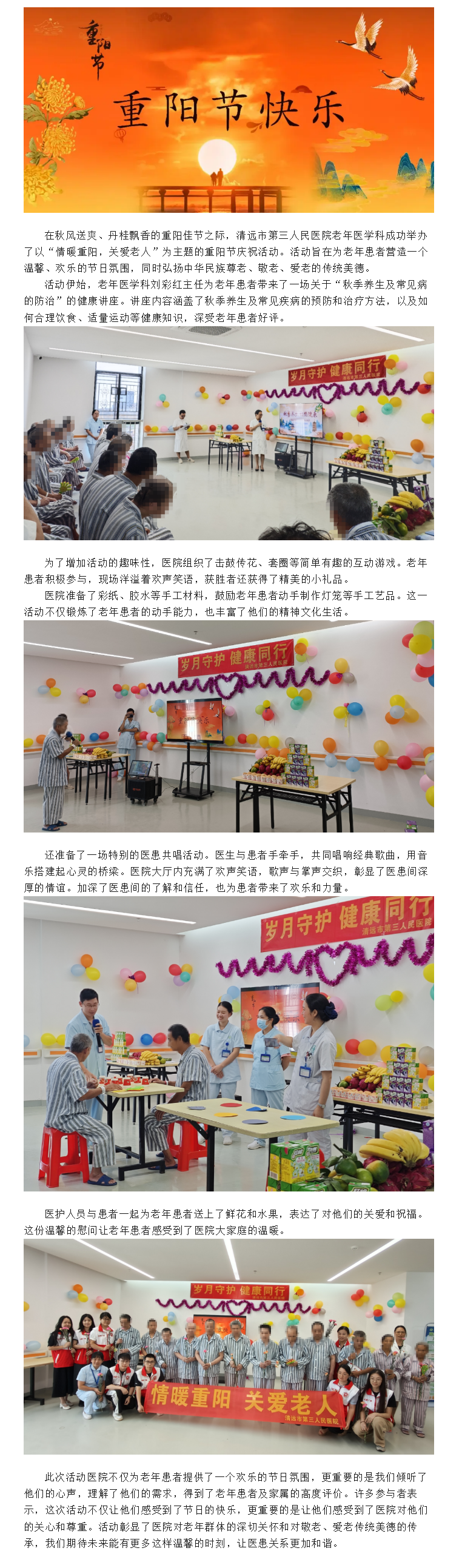 【弘揚敬老愛老美德,共筑和諧醫(yī)患關系】清遠市第三人民醫(yī)院老年醫(yī)學科成功舉辦“情暖重陽,關愛老人”活動